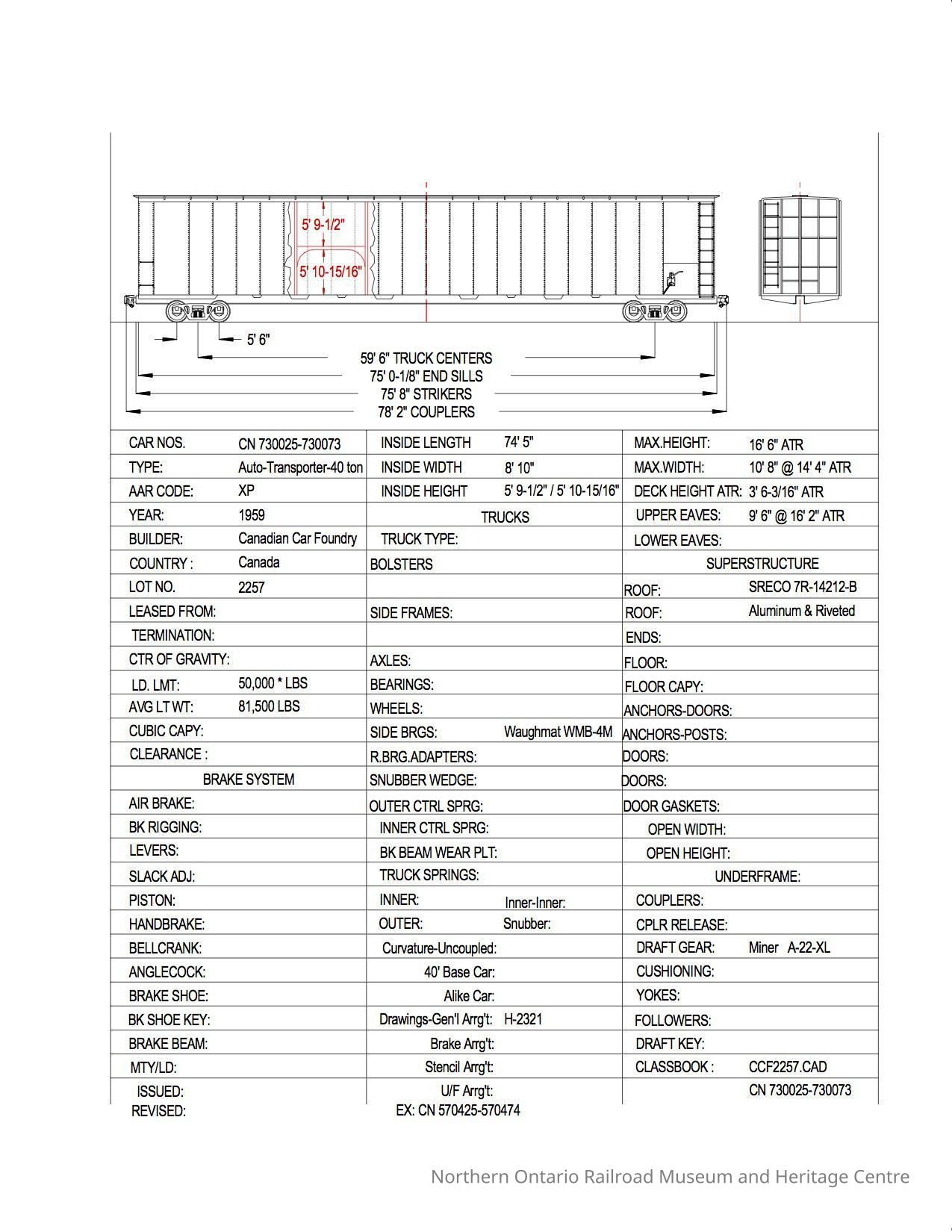 Document, Rolling Stock Plan, Canadian National Railway, CN730025-730073.Collection