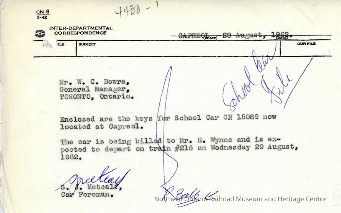 Document, School Car CN 15089 Capreol Keys Notification.Collection