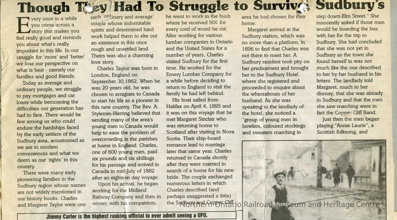 Document, Though They Struggled to Survive, Sudbury's Pioneers Lead a Life of Adventure and Romance.Collection