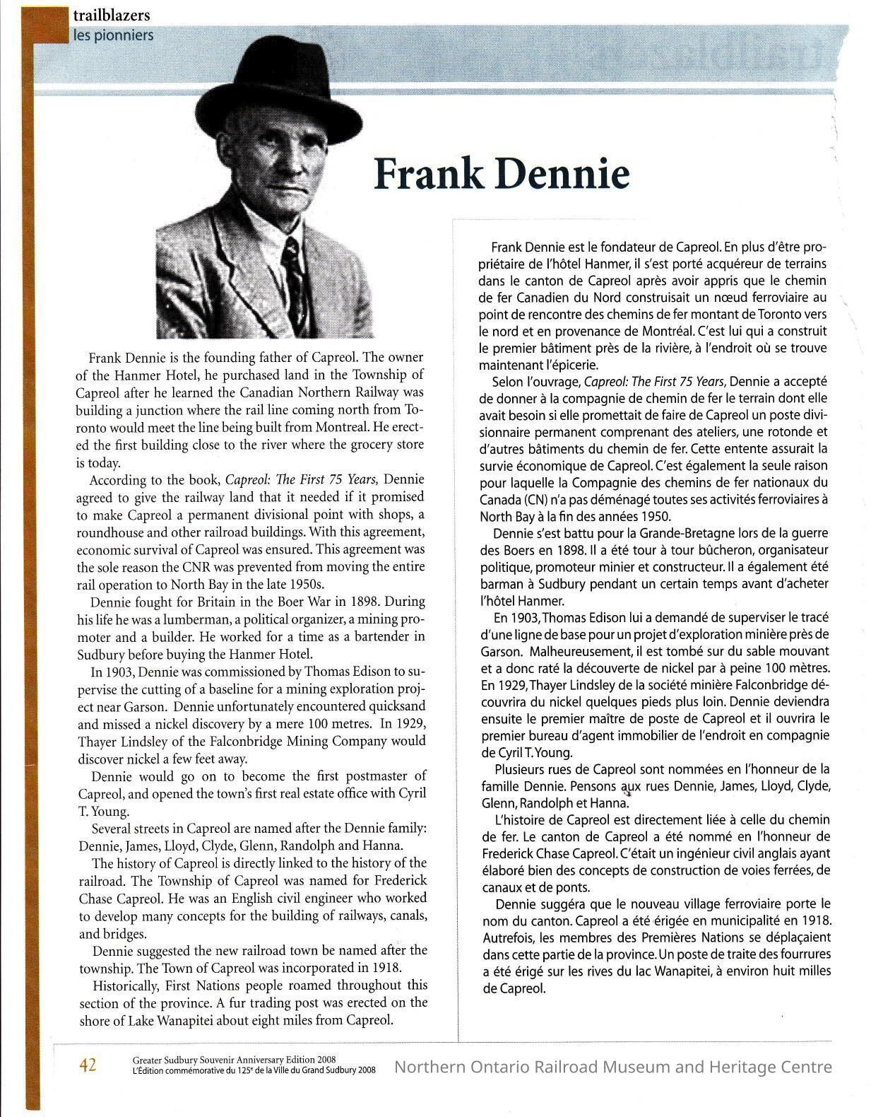 A magazine article profiling Capreol founder Frank Dennie, in both French and English.Date(s) of Creation