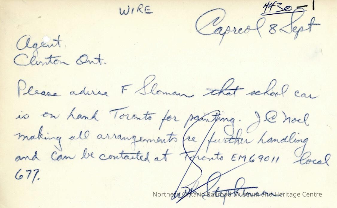 Document, Wire to Inform Sloman about school car.Collection