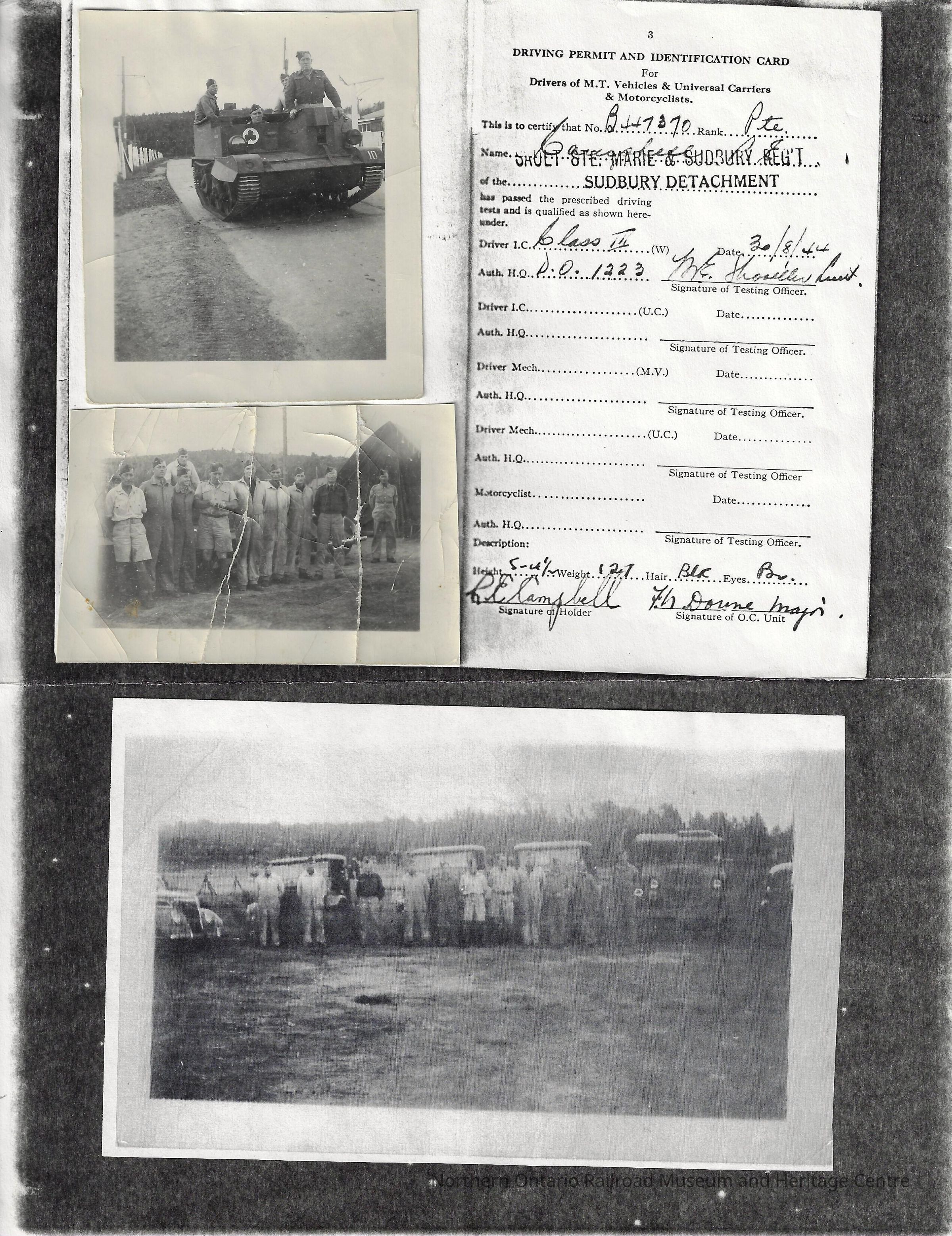 copy of driver permit and identification card for Roy CampbellCollection