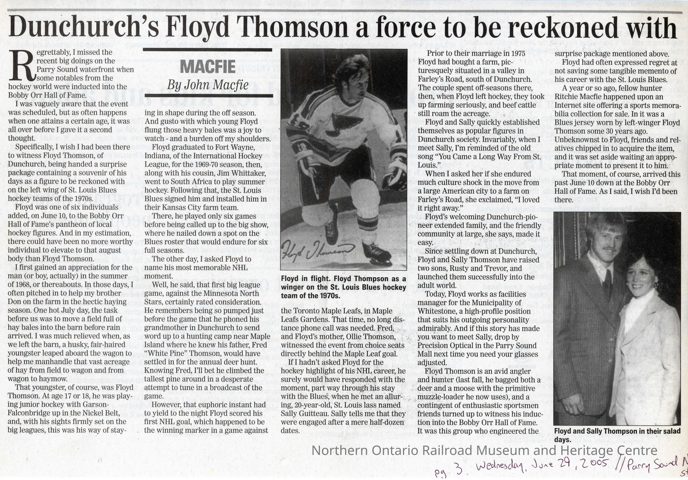 "Dunchurch's Floyd Thompson a force to be reckoned with" in Parry Sound North Star, Wednesday June 29, 2005 (Pg. 3)Collection