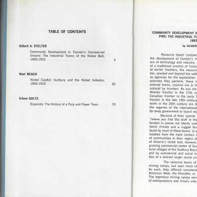 1. "Community Development in Toronto's Commercial Empire: The Industrial Towns of the Nickel Belt, 1883-1931" by Gilbert A. Stelter