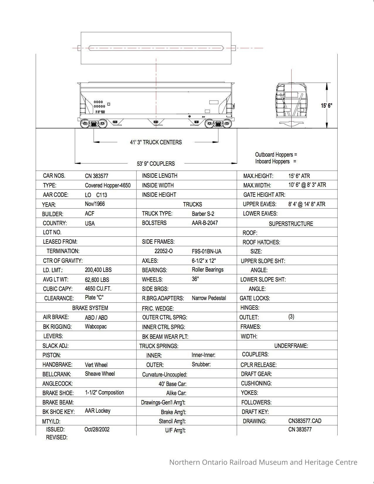 Document, Rolling Stock Plan, Canadian National Railway, CN383577.Collection