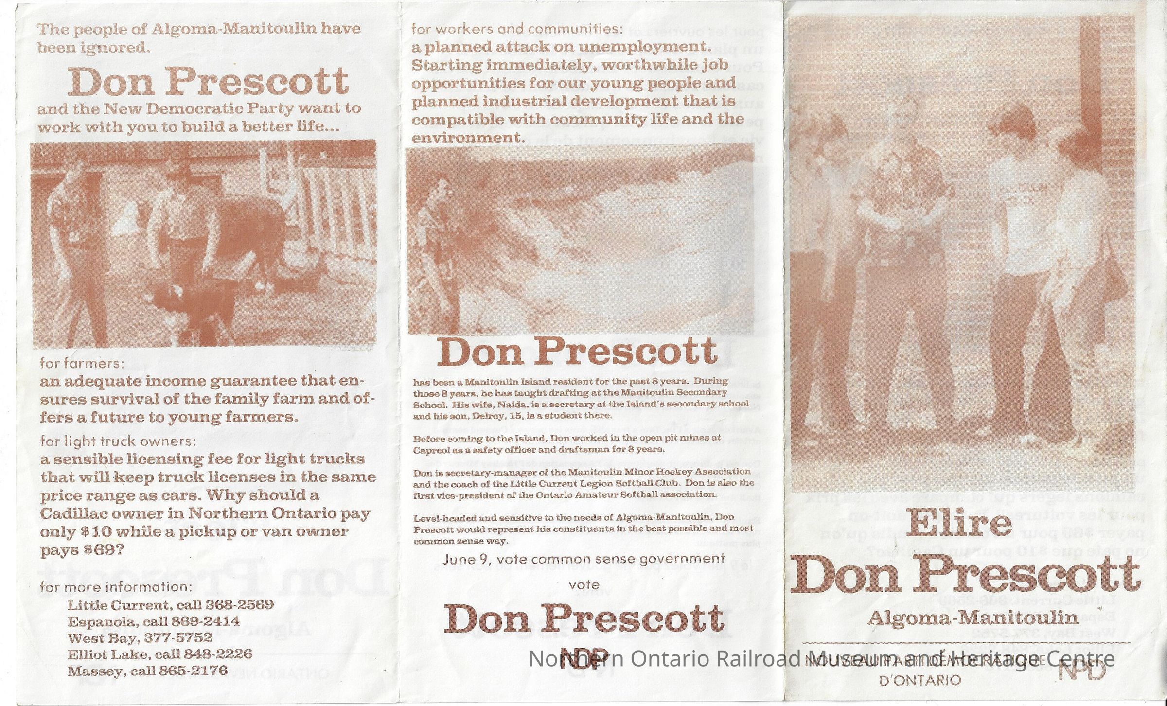 “Elect Don Prescott Algoma- Manitoulin Ontario New Democrats NDP” PamphletEntry/Object ID