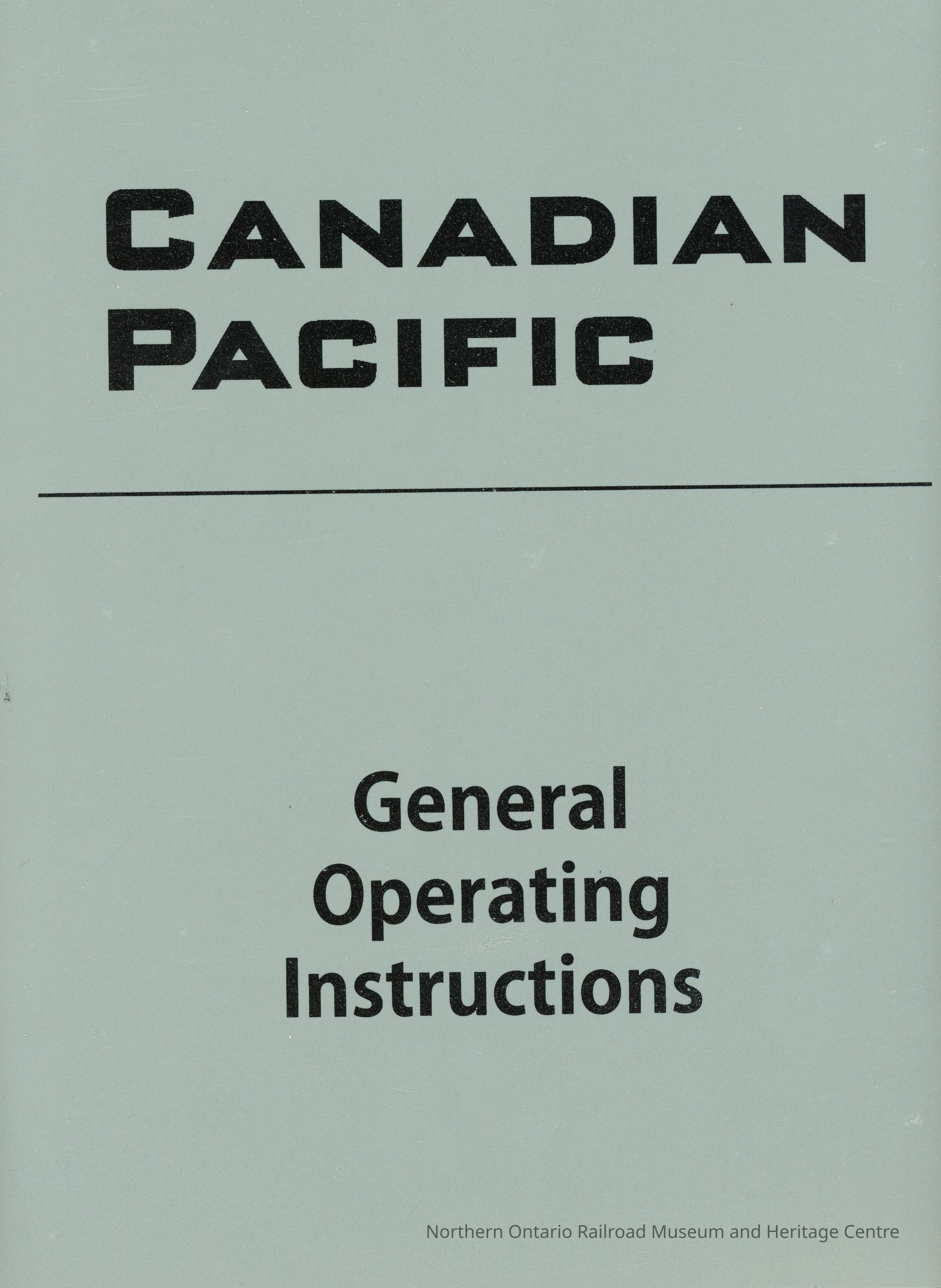 Employee Material, Canadian Pacific General Operating Instructions 2013Entry/Object ID