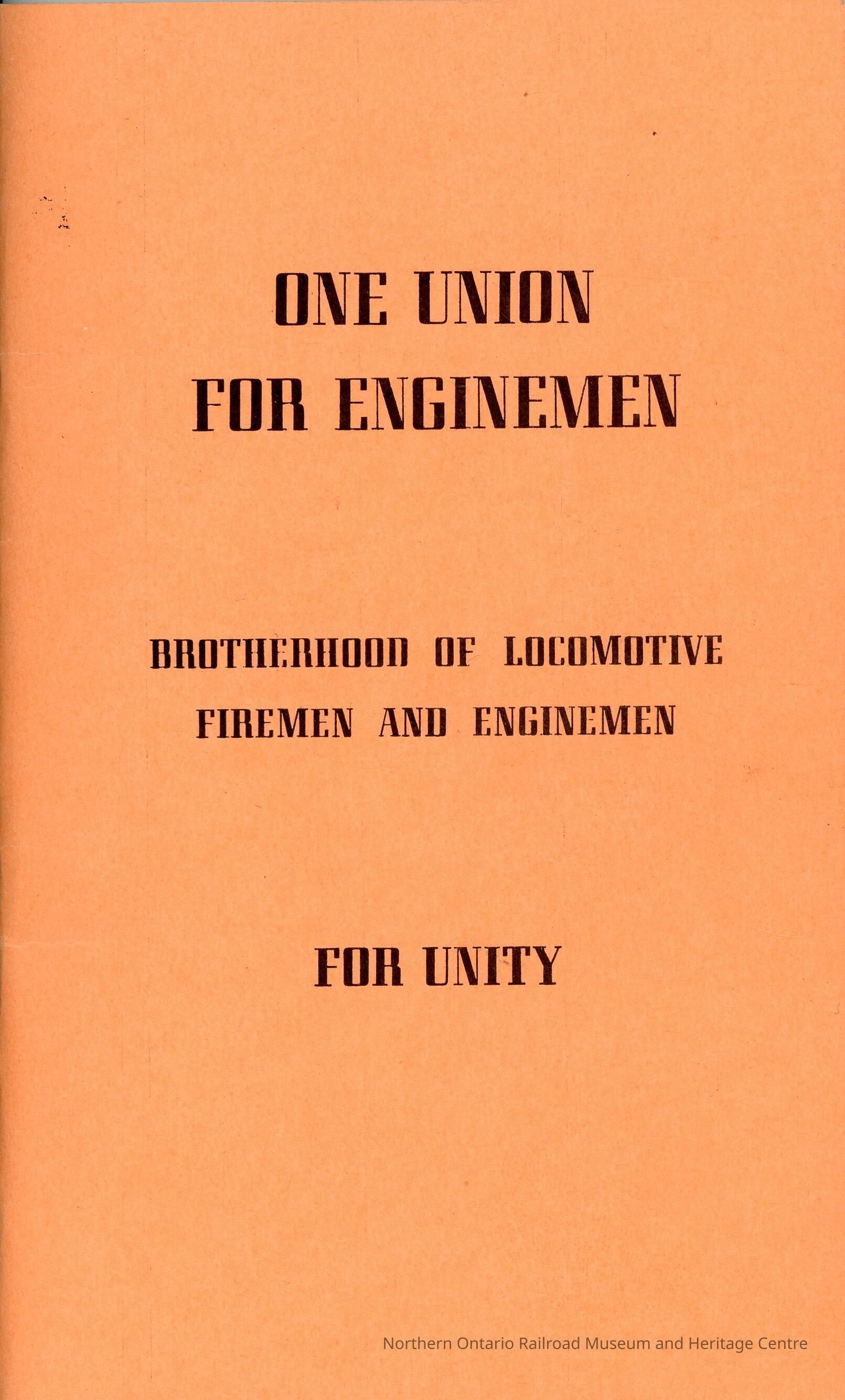 Employee Material, One Union for Enginemen, Brotherhood of Locomotive Firemen and Enginemen. April 1, 1966Entry/Object ID