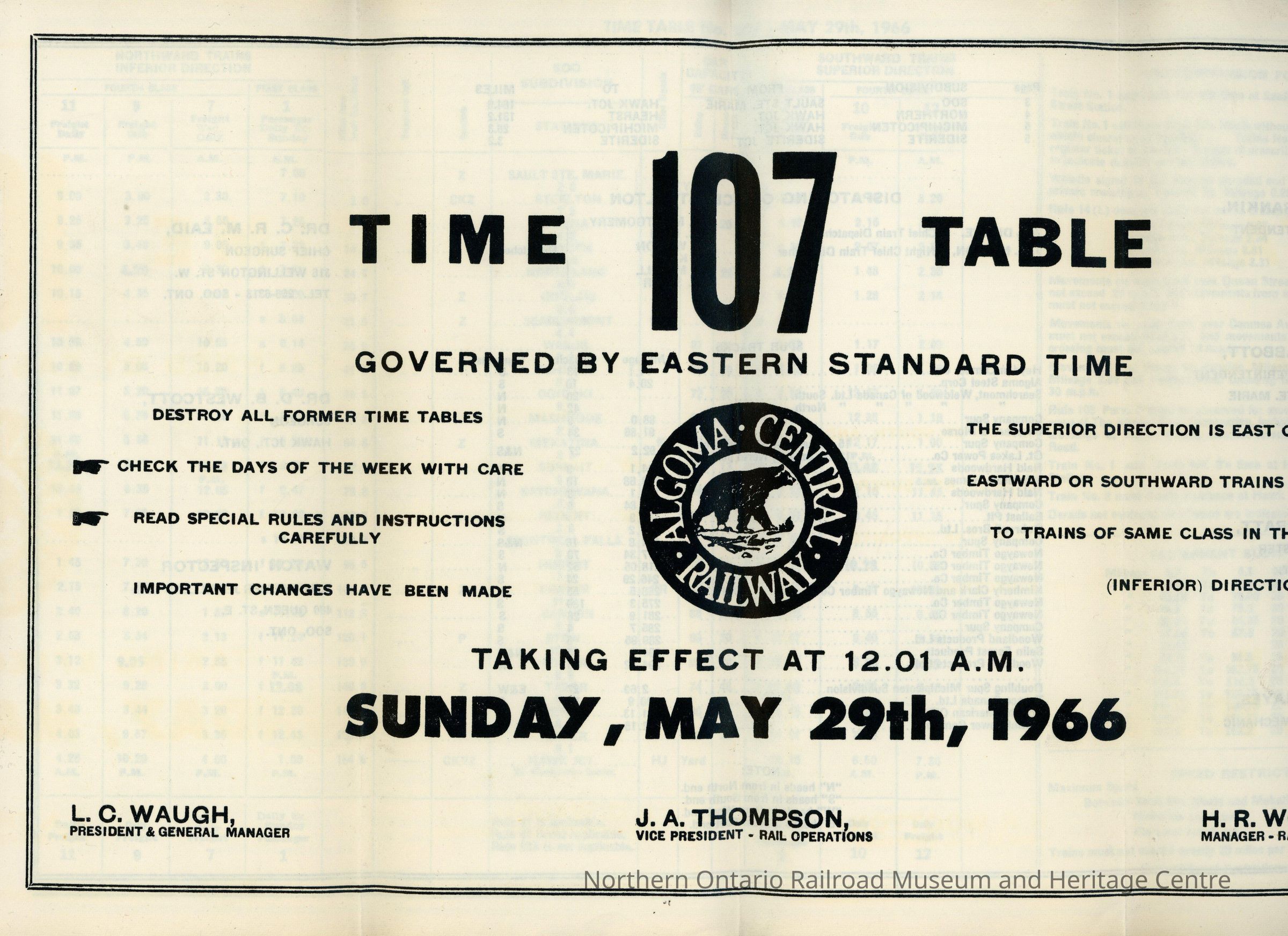 Employee Timetable, ACR 107, May 29th 1966.Collection