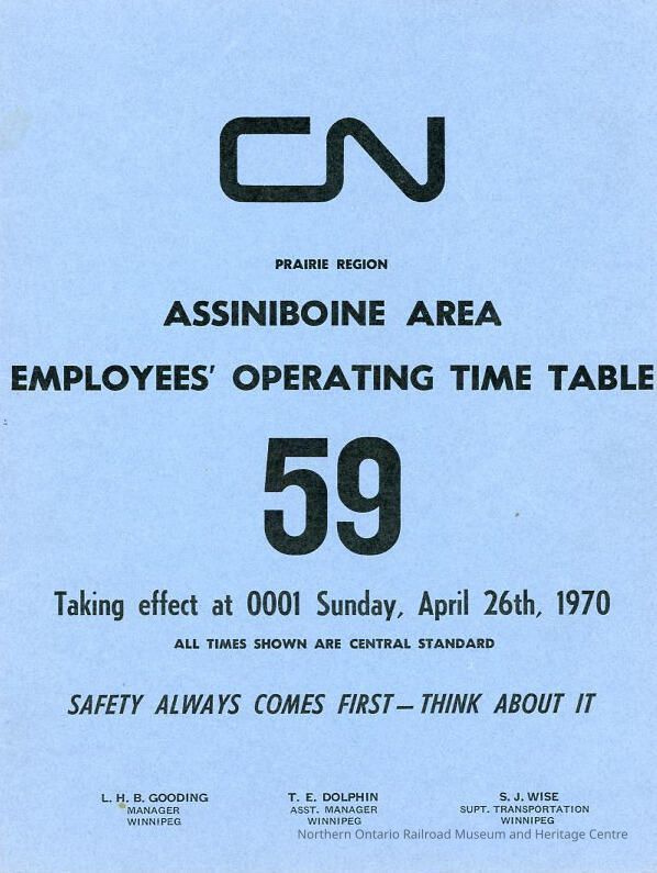 Employee Timetable, CN Rail, Assiniboine 59, April 26th 1970.Collection