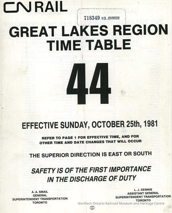 Employee Timetable, CN Rail, Great Lakes Region 44, October 25th 1981.Collection