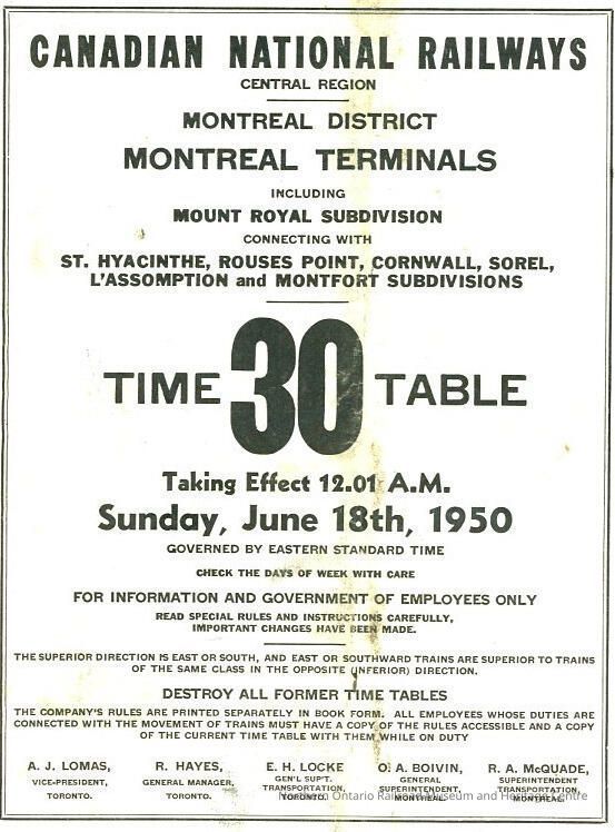 Employee Timetable, CN Rail, Montreal Terminals 30, June 18th 1950.Collection