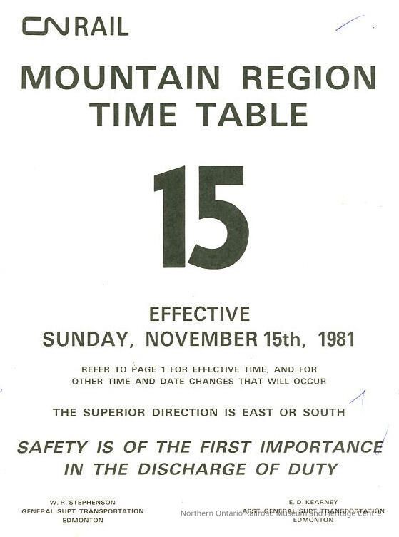Employee Timetable, CN Rail, Mountain Region 15, November 15th 1981.Collection