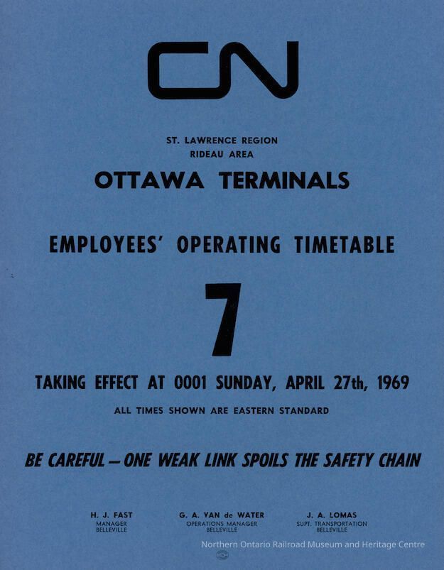 Employee Timetable, CN Rail, Ottawa Terminals 7, April 27th 1969.Collection