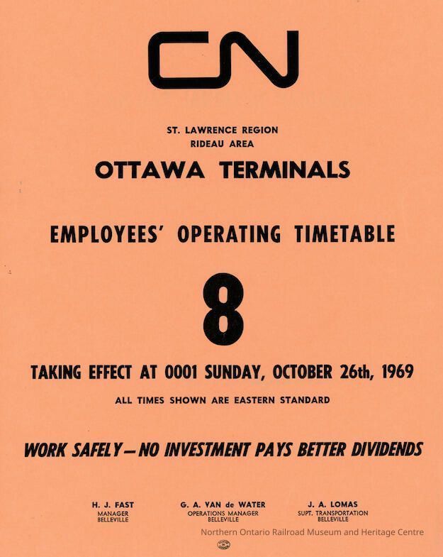 Employee Timetable, CN Rail, Ottawa Terminals 8, October 26th 1969.Collection