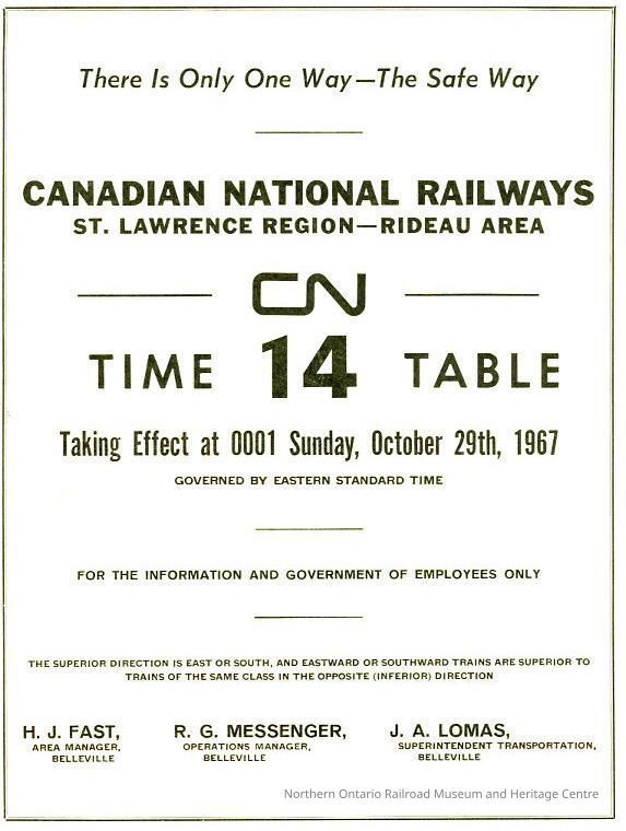 Employee Timetable, CN Rail, St. Lawrence Region 14, October 29th 1967.Collection