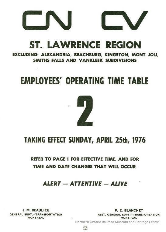 Employee Timetable, CN Rail, St. Lawrence Region 2, April 25th 1976.Collection