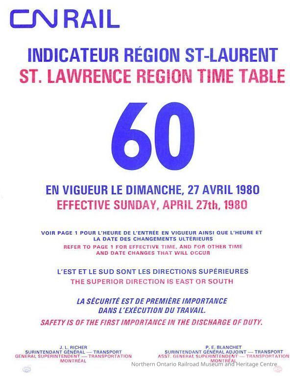 Employee Timetable, CN Rail, St. Lawrence Region 60, April 27th 1980.Collection