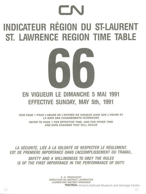 Employee Timetable, CN Rail, St. Lawrence Region 66, May 5th 1991.Collection
