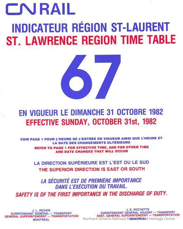 Employee Timetable, CN Rail, St. Lawrence Region 67, October 31st 1982.Collection