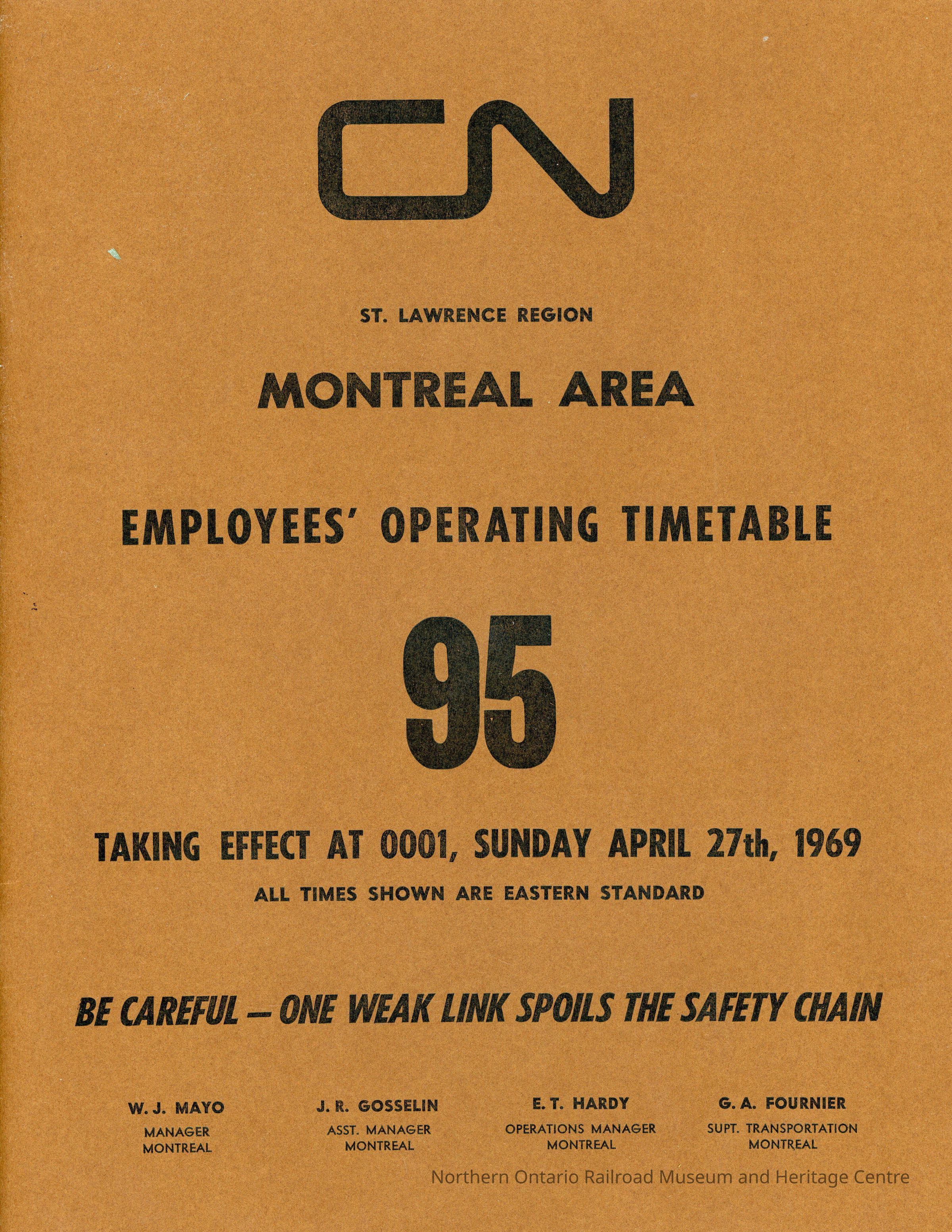 Employee Timetable, CN Rail, St. Lawrence Region, Montreal Area, Timetable 95, April 27th, 1969.Collection