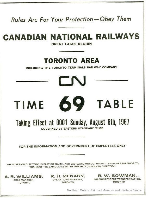 Employee Timetable, CN Rail, Toronto Area 69, August 6th 1967.Collection