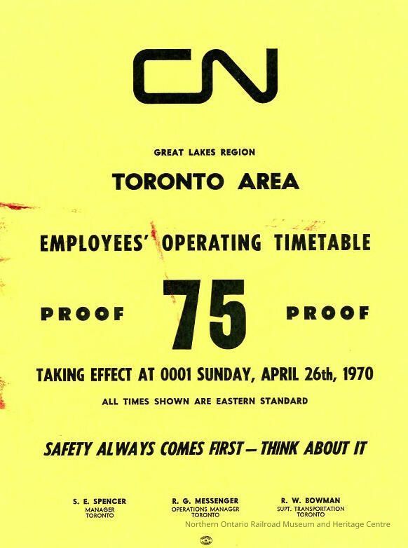 Employee Timetable, CN Rail, Toronto Area 75, April 26th 1970.Collection