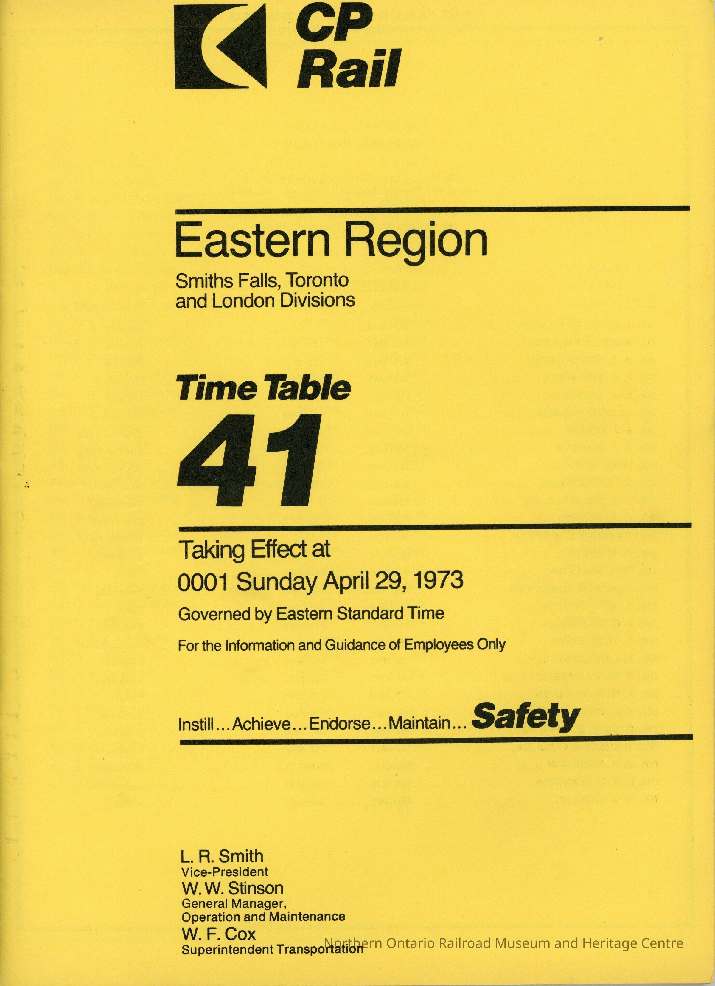 Employee Timetable, CP Rail, Eastern Region, Time Table 41, April 29th 1973.Collection
