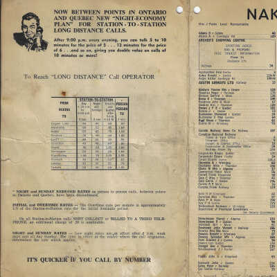 The directory lists the names, numbers, and addresses of all people living and businesses operating in Nakina, Ontario as of August 1962.Collection