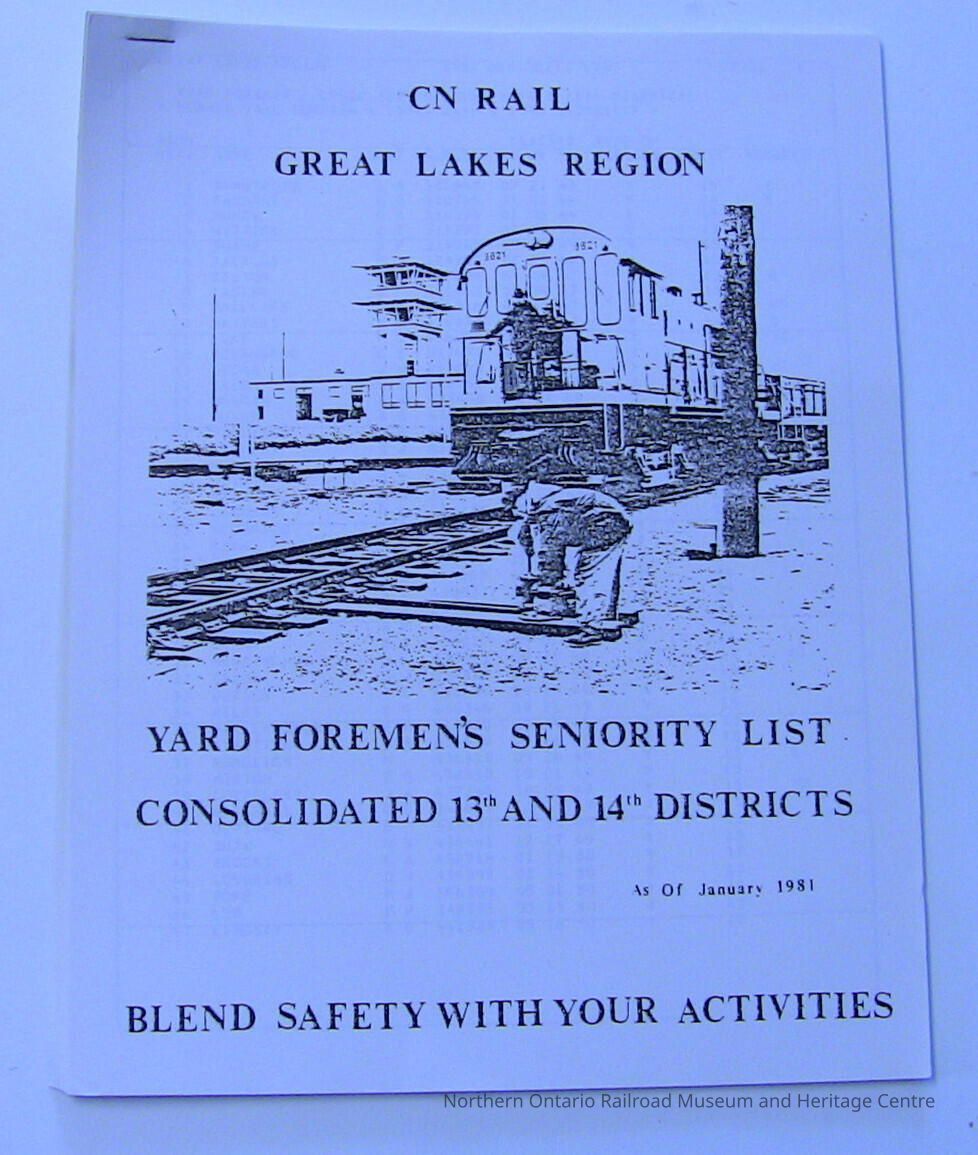 CN Rail Great Lakes Region Yard Foremen's Seniority List: Consolidated 13th and 14th Seniority Districts, as of January 1981Description