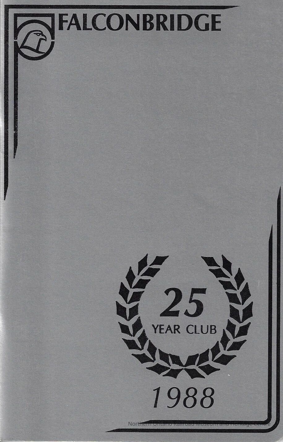 The program was for a banquet celebrating all employees who have worked for the company for 25 years as of 1988. Once an employee had worked for Falconbridge for over 25 years, they joined the 25 years club.