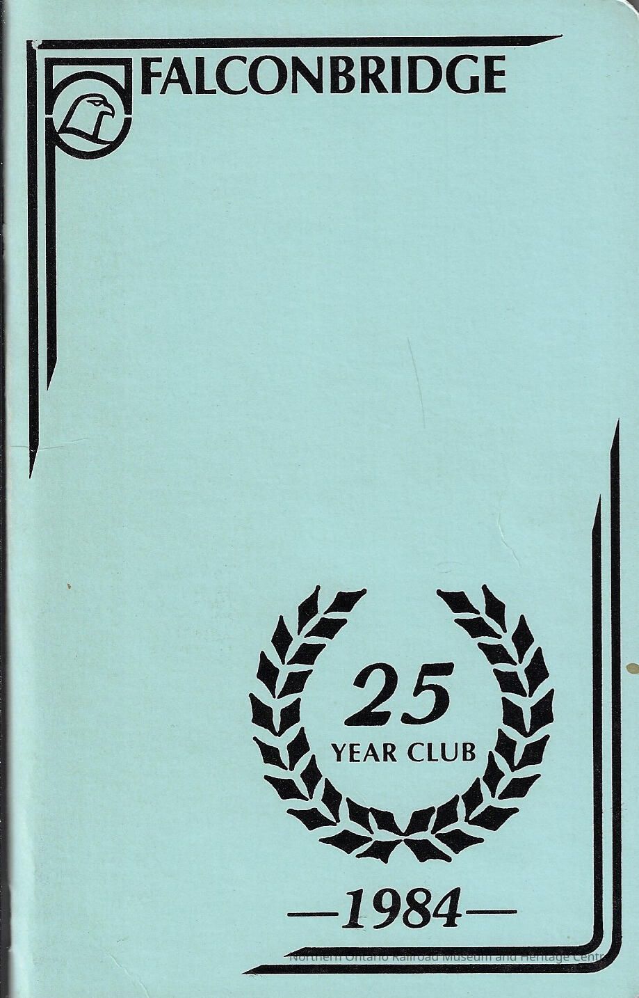 The program was for a banquet celebrating all employees who have worked for the company for 25 years as of 1984. Once an employee had worked for Falconbridge for over 25 years, they joined the 25 years club.