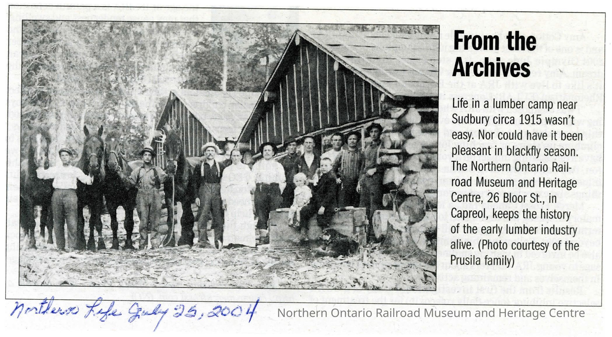 "From The Archives" Newspaper post from the NORMHC archives. Courtesy of the Prusila FamilyCollection