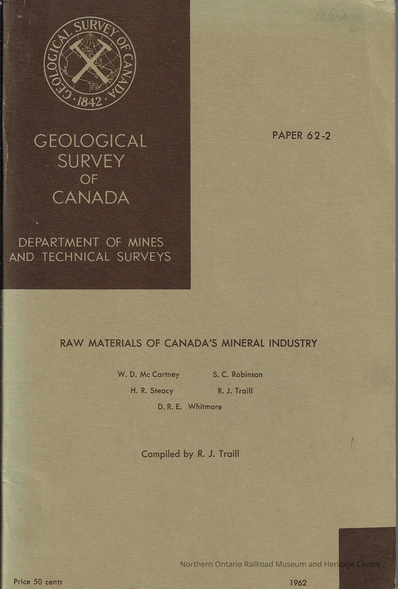 Geological Survey of Canada Paper 62 (2): Raw Materials of Canada’s Mineral IndustryEntry/Object ID