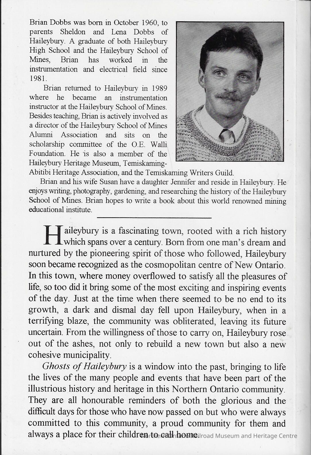 Book detailing the history of Haileybury Ontario. It discusses the rise and fall of the town and the circumstances that made this occur.Creator