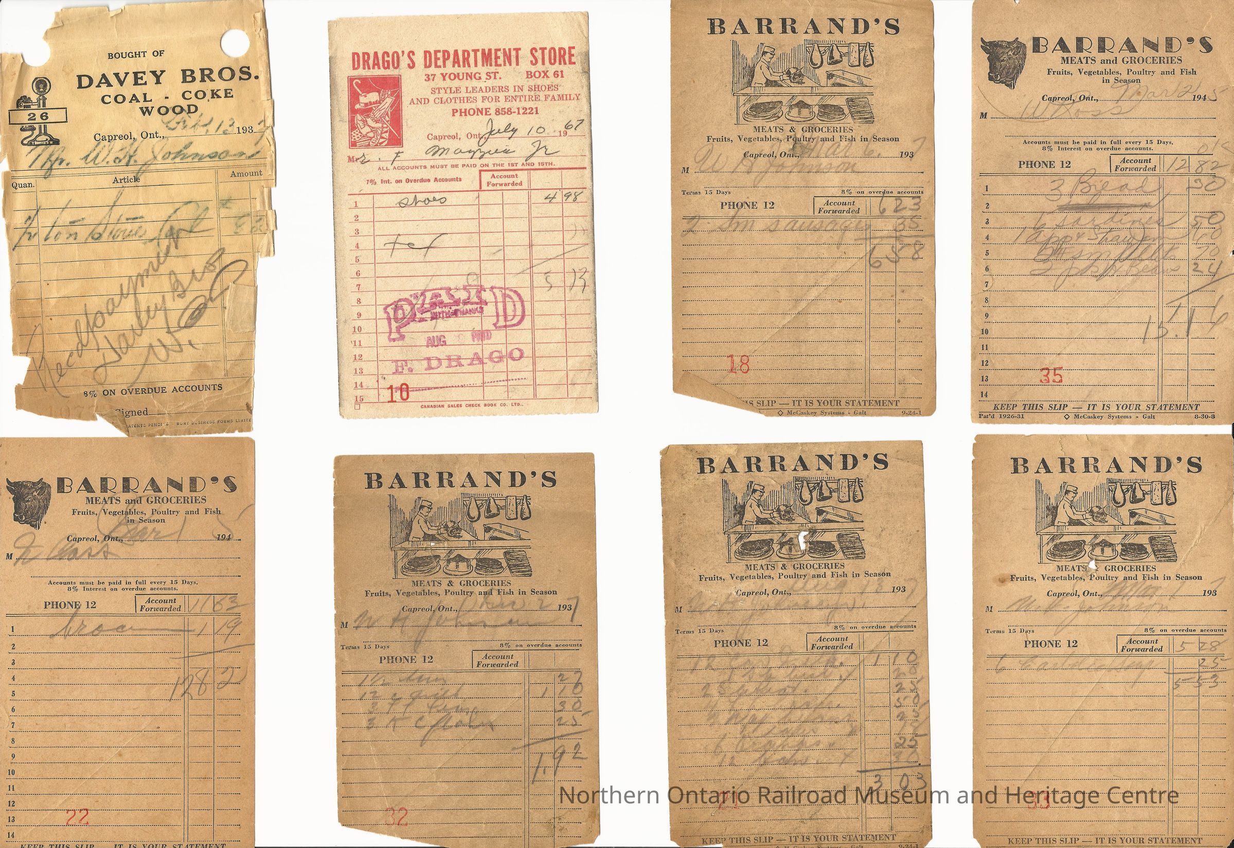 Grocery Receipts from Capreol grocery storesEntry/Object ID