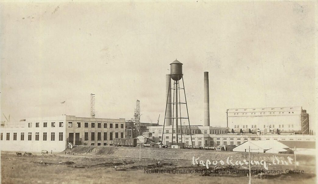 Postcard belonging to former Capreol mayor Harold Prescott. The postcard features an image of the layout of the paper mill in Kapuskasing Ontario.