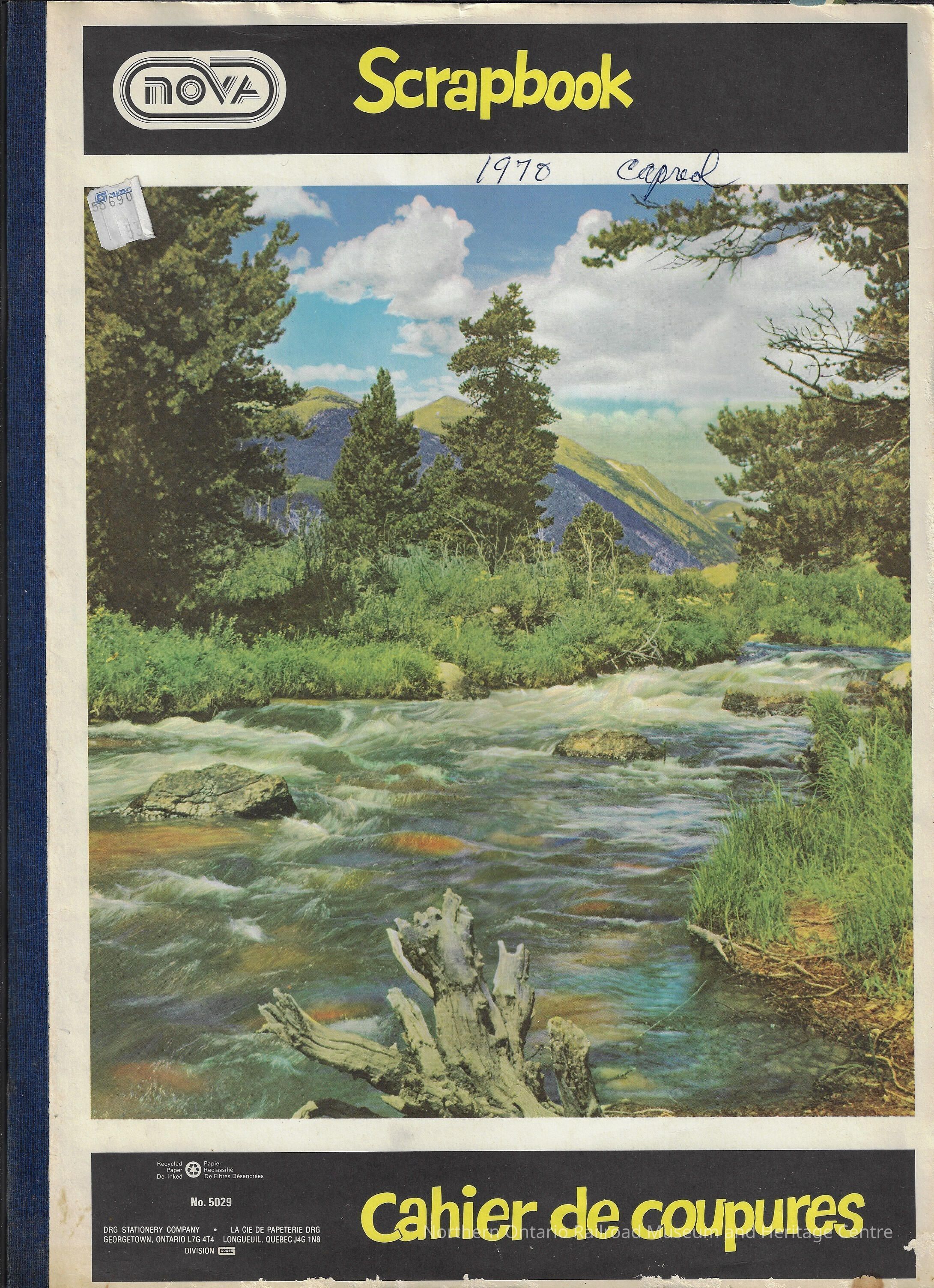 Personal scrapbook belonging to former Capreol mayor, Harold Prescott. It is his 1970 year scrapbook and it includes a variety of documents including: newspaper clippings, photographs, letters, and personal notes. The documents all tell about events or stories that happened in Capreol in 1970.
