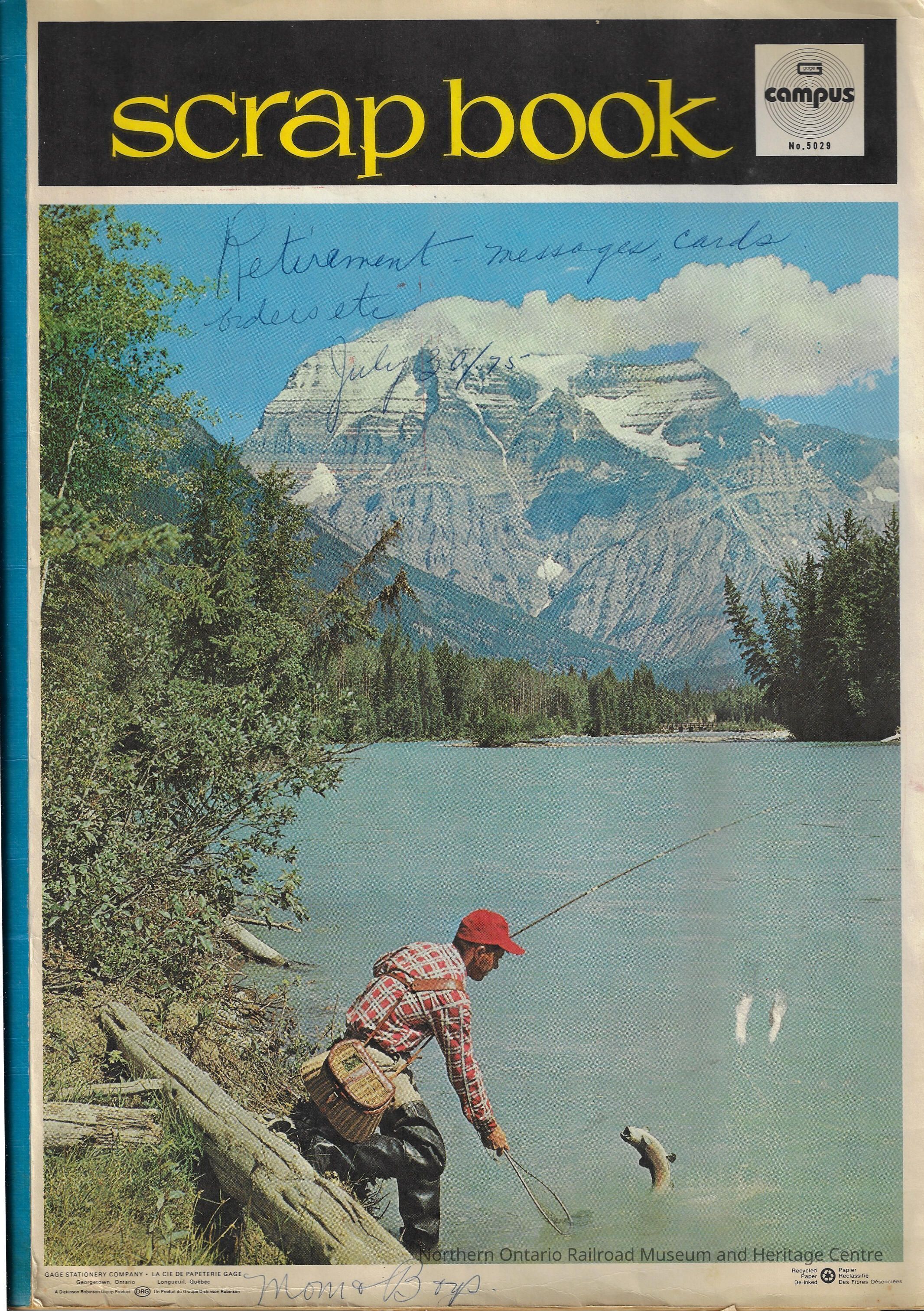 Personal scrapbook belonging to former Capreol Mayor Harold Prescott. It is his 1975 retirement book and it contains a variety of documents including: train orders, receipts, cards, letters, memberships, newspaper clippings, certificates and more. The book commemorates his retirement in 1975.