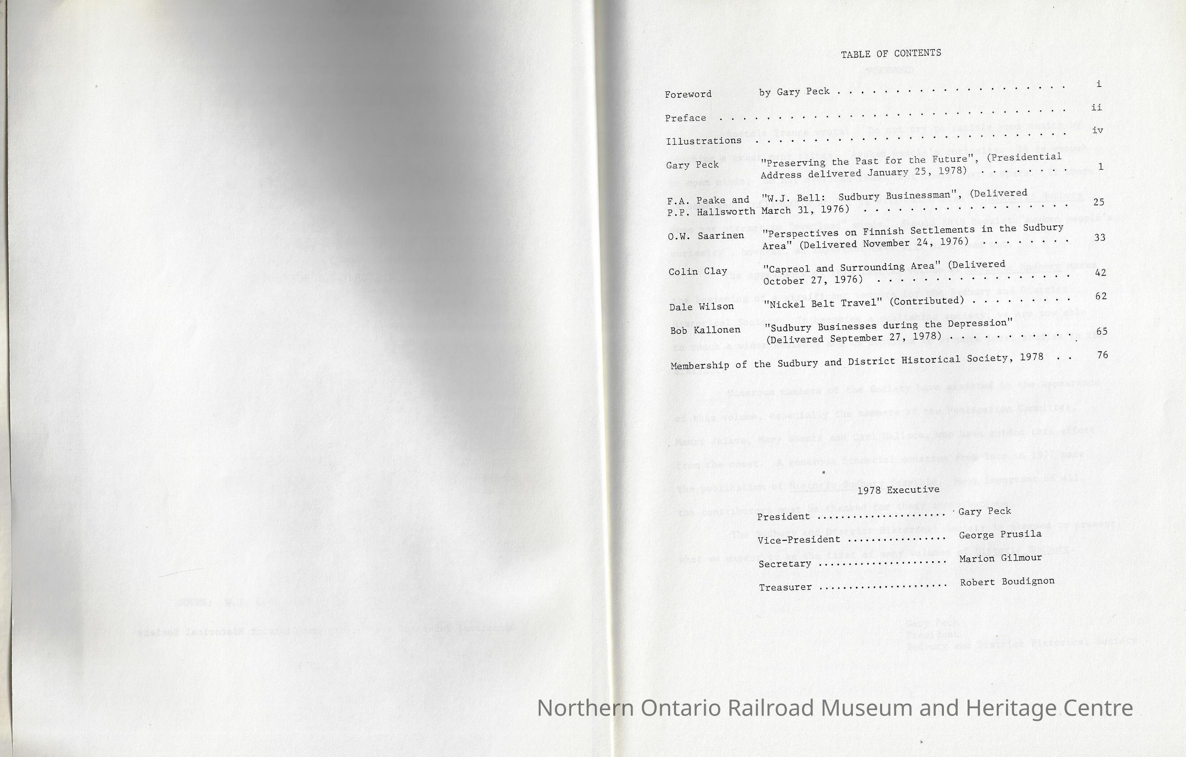Book published by the Sudbury and District Historical Society compiling seven total papers/essays written on Sudbury History.Context