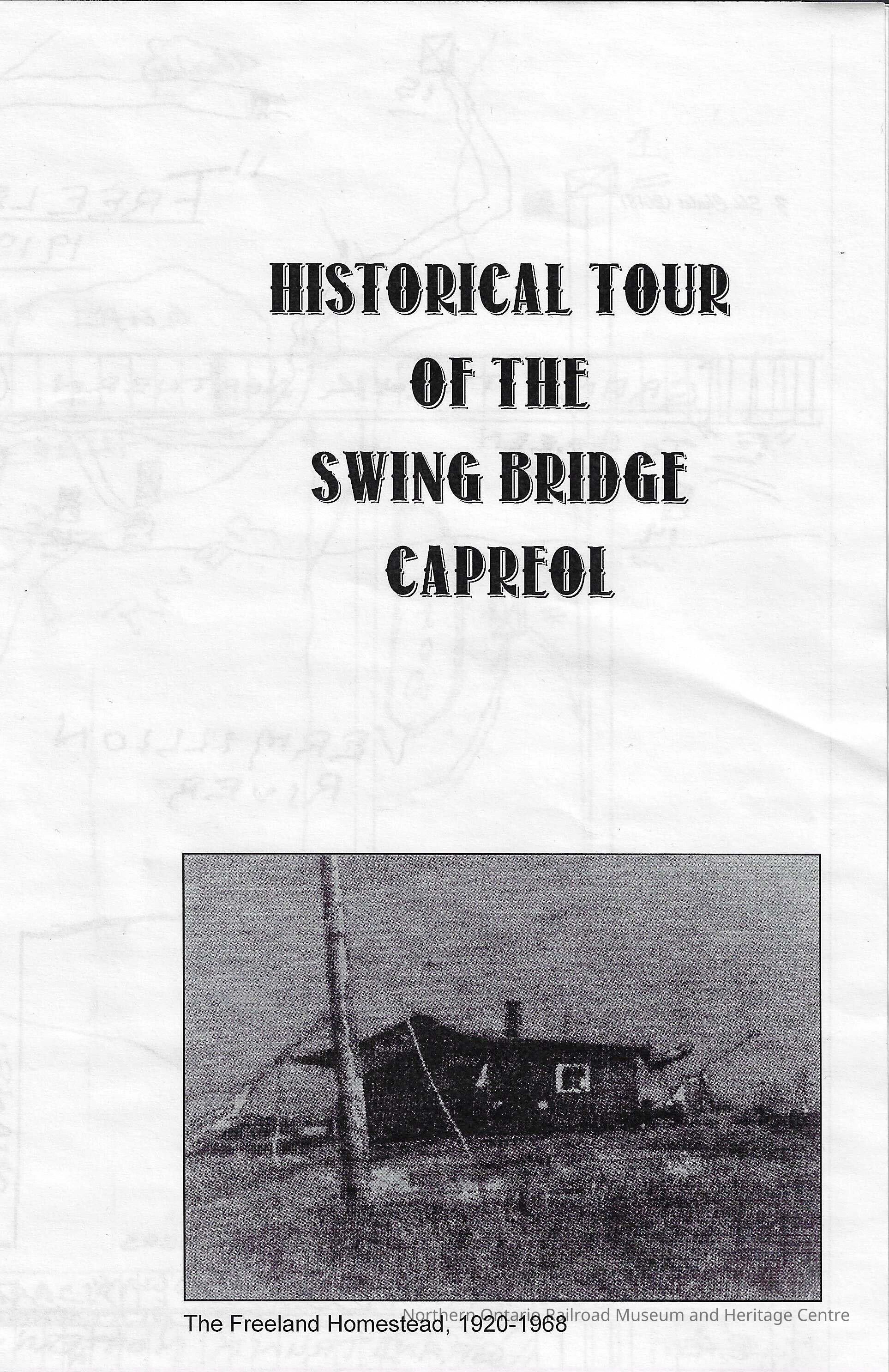 Original document, given out as a map to show a tour of the Capreol Swing bridge. It contains a historical hand drawn map and two historical photographs.Collection