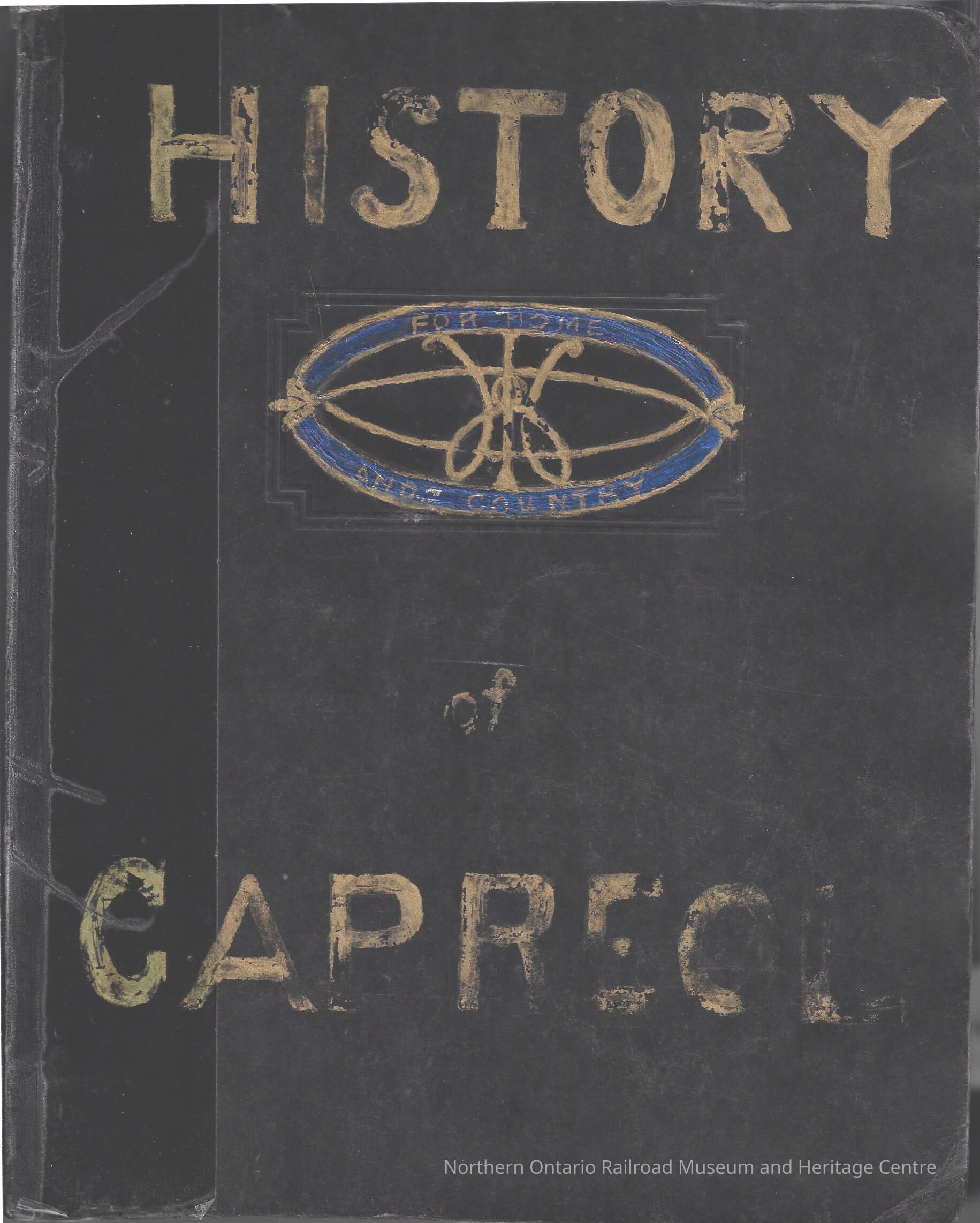 Book, compilation of news paper clippings, reports, photographs and other various sources compiled to tell the history of the town of Capreol. The book discusses the origins of the town, how it was founded, and all other events that took place between when the town site was laid out in 1913, and the book's publishing in 1930. It contains historical maps, photographs, and stories. This version of the book is a scrapbook, assumed to be the drafted copy as there are edits made throughout it.
