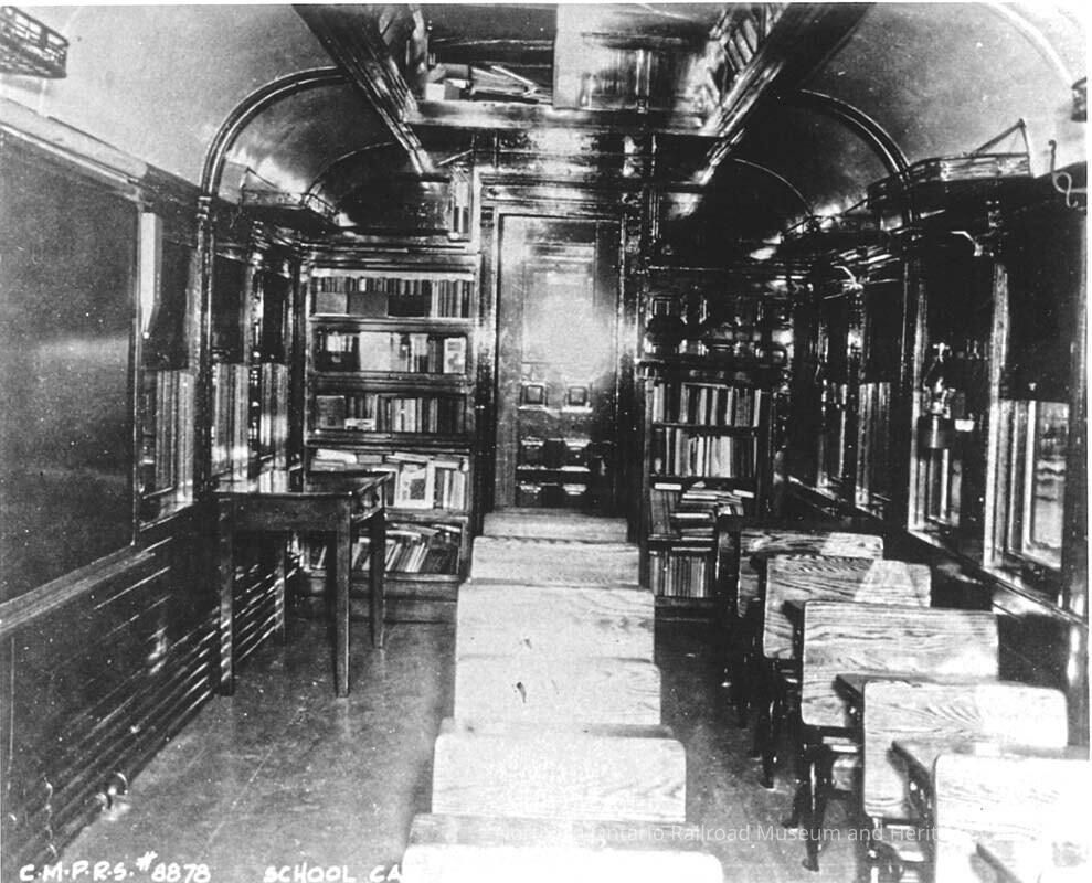Interior Photo of CP School Car #50, December 1947. Email from Dale Wilson states, "clearly a CPR Motive Power and Rolling official stock photo #8878."Context