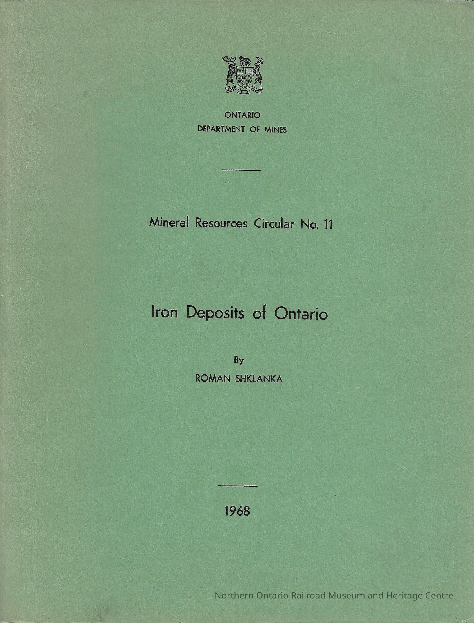Book, report from the Ontario Department of Mines discussing the iron deposits of Ontario.Context