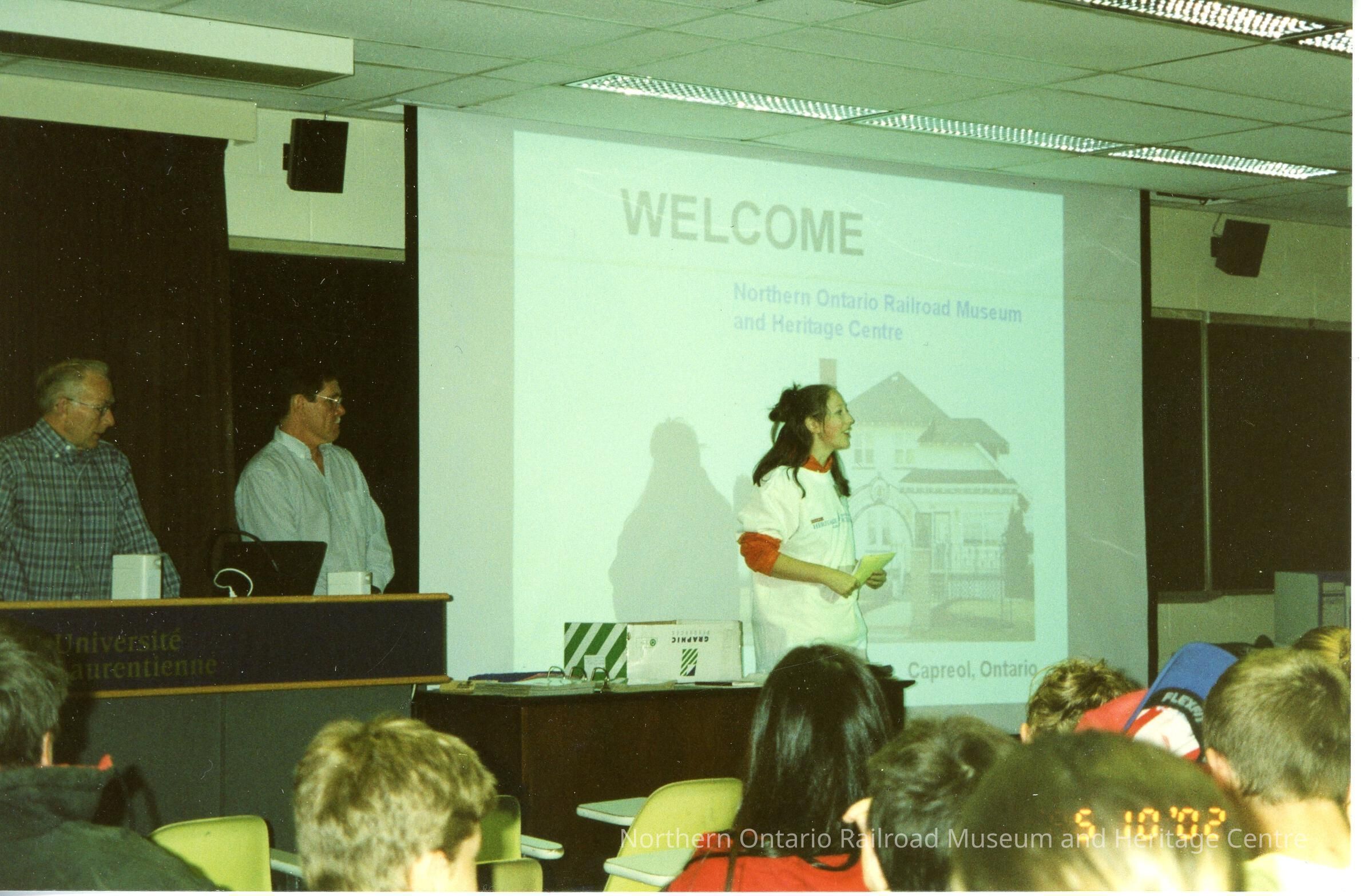 Laurentian student introducing NORMHC at the Laurentian University Heritage Fair, 10 May 2002Description