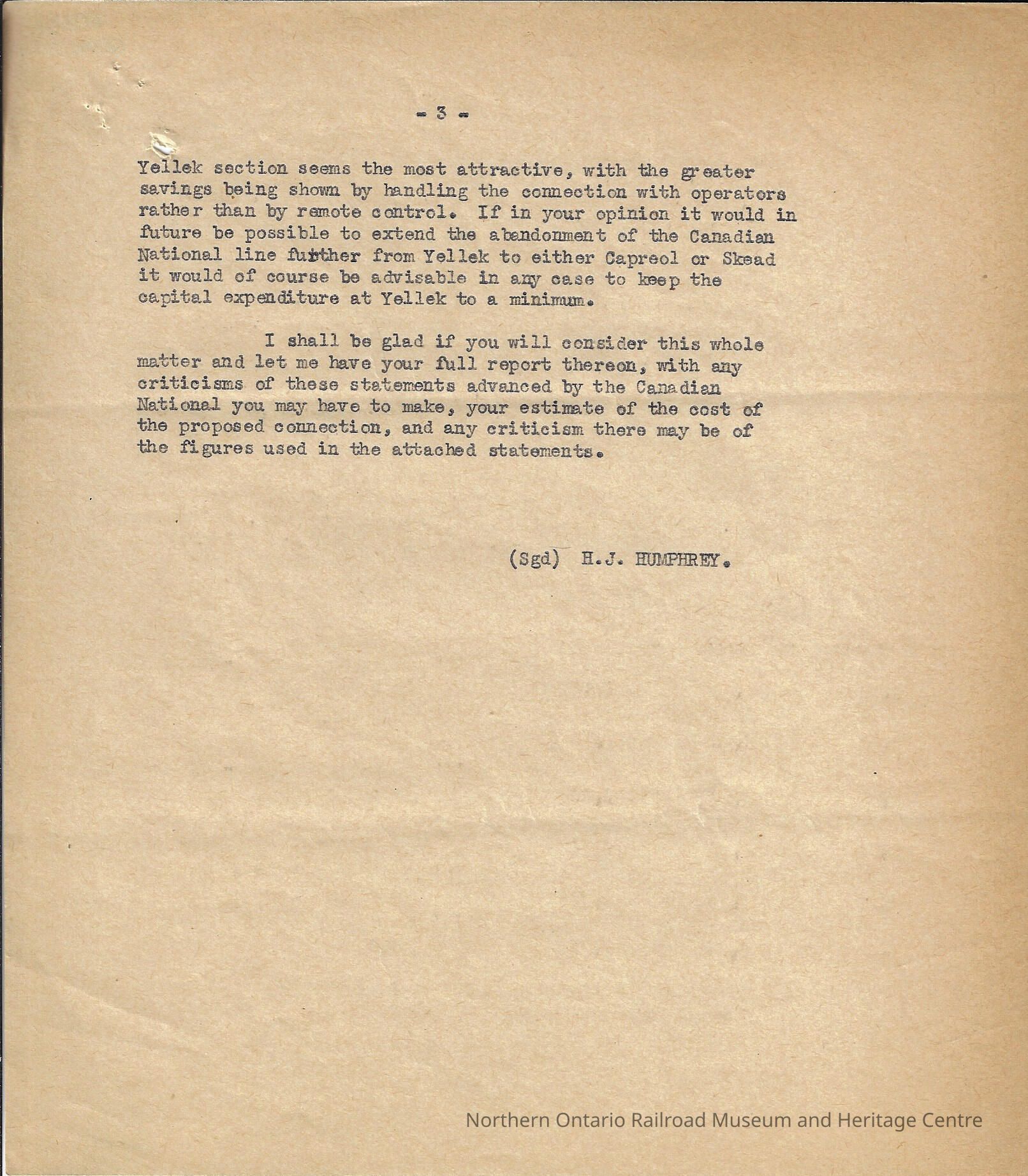 Letter sent to T. Hambley, Esquire from H. J. HumphreyEntry/Object ID