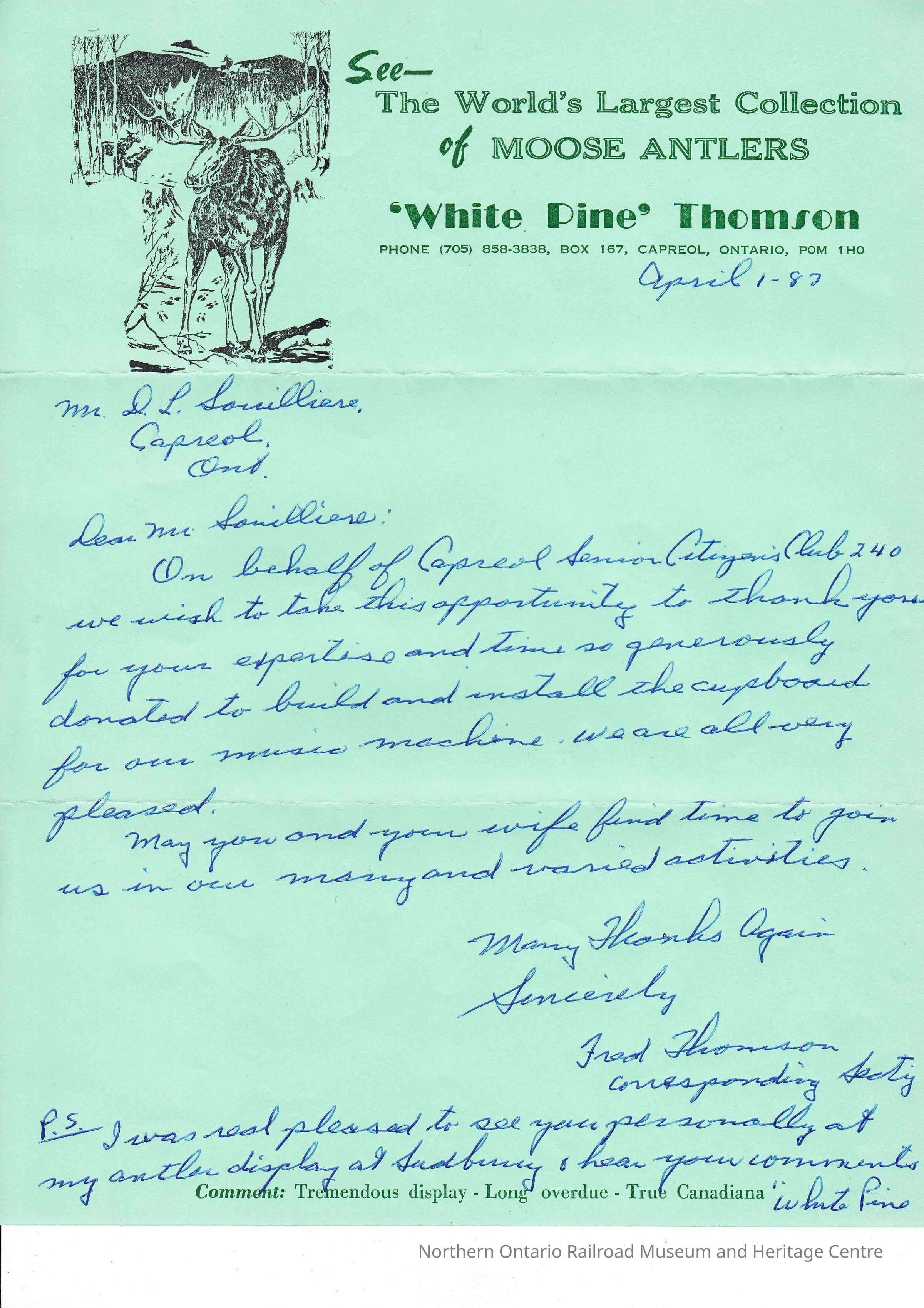 Letter to Ernst Souilliere from Fred Thompson, April 1 1982Entry/Object ID