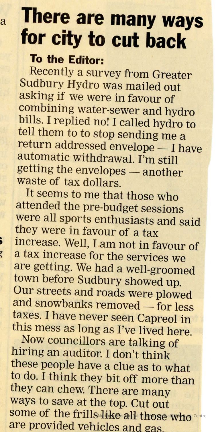 "Letter to the Editor" in Sudbury Star, 29 March 2004Description
