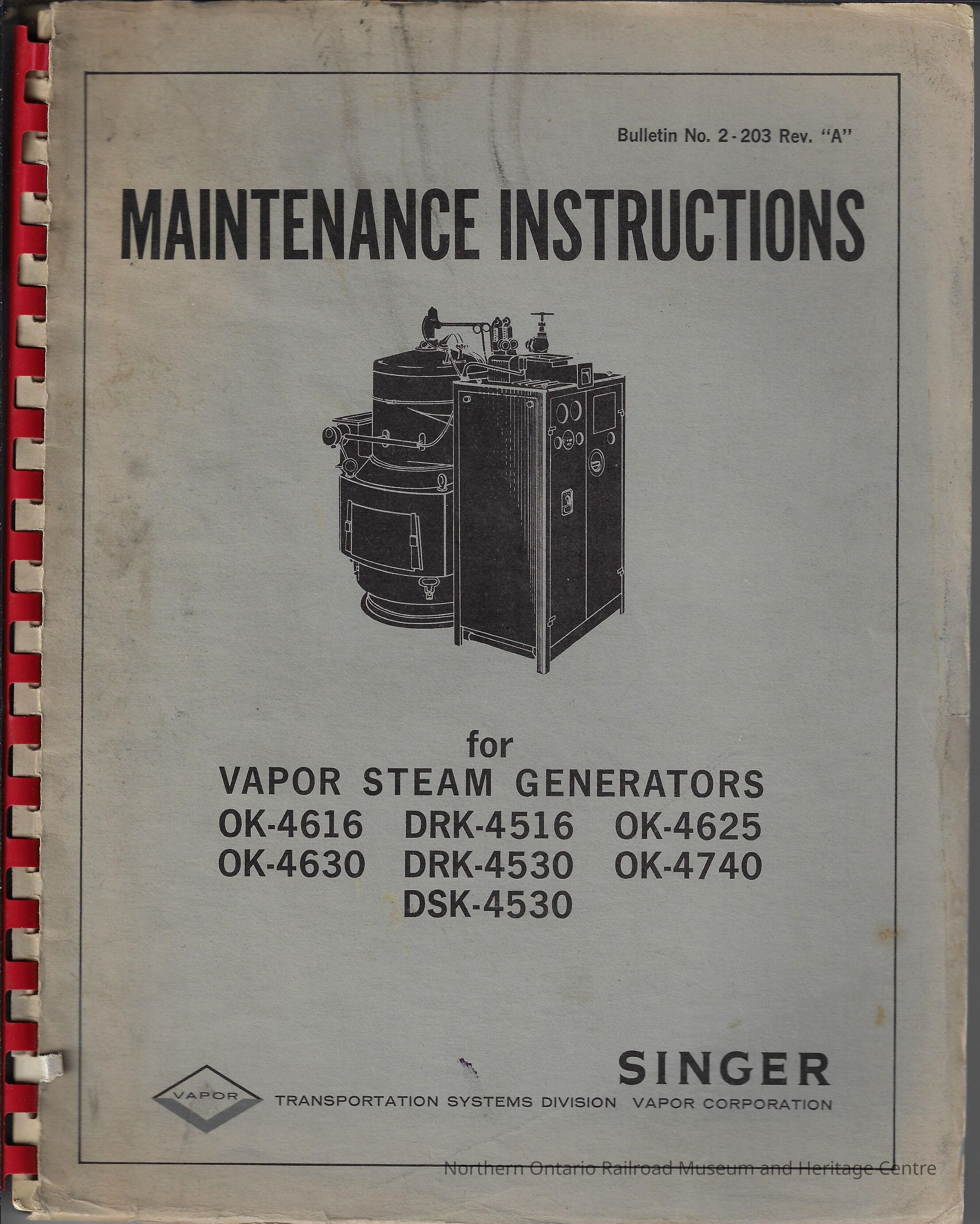 Maintenance instructions Vapor Steam GeneratorsEntry/Object ID