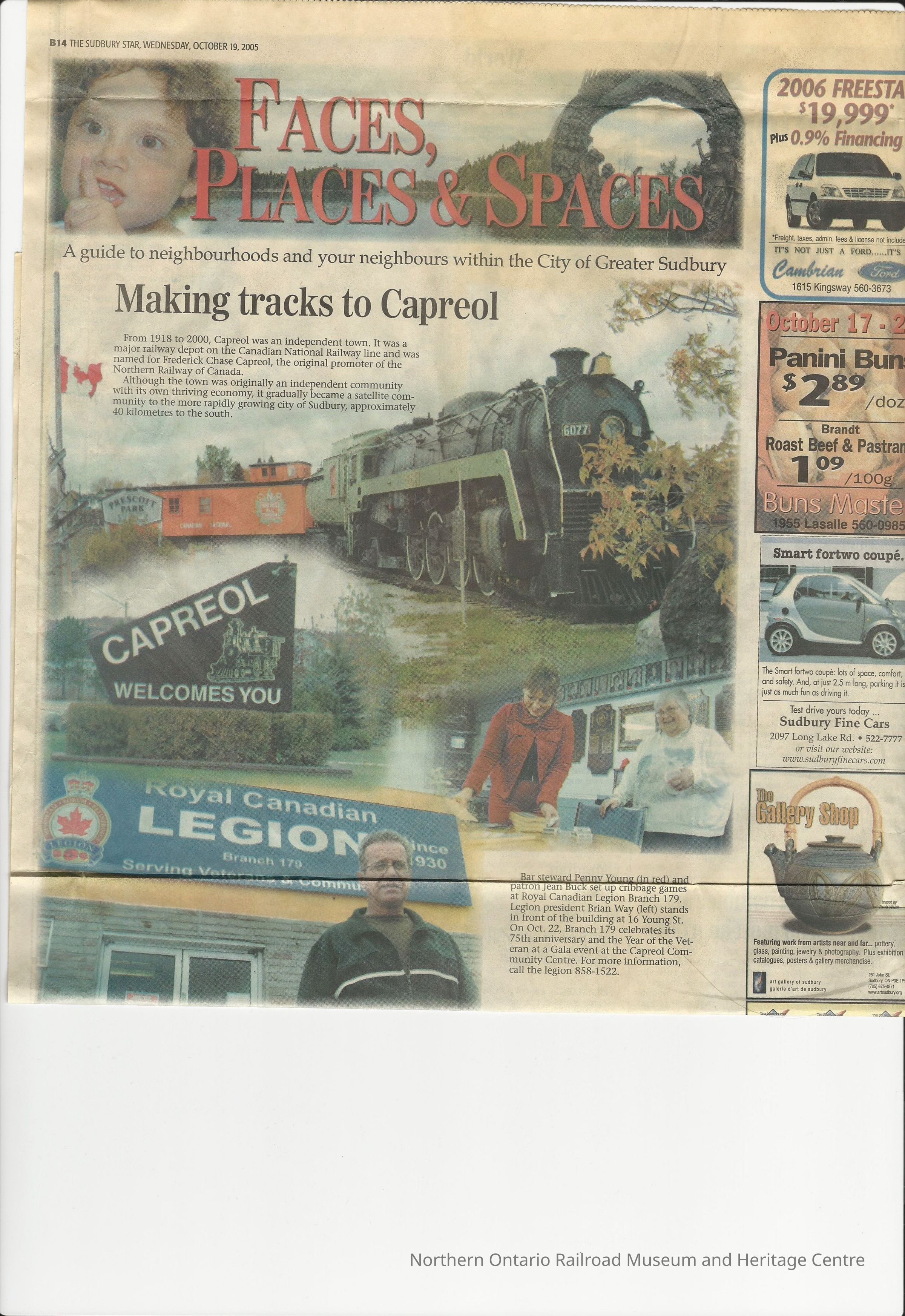 "Making Tracks in Capreol" in The Sudbury Star, October 19 2005Description